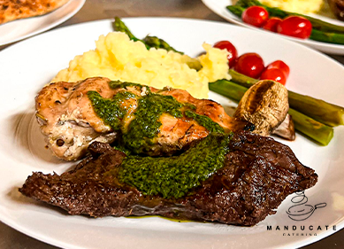 - Piccantino: Soppressata, porcini mushrooms pate’, fresh mozzarella, arugula, slightly spicy mayo.